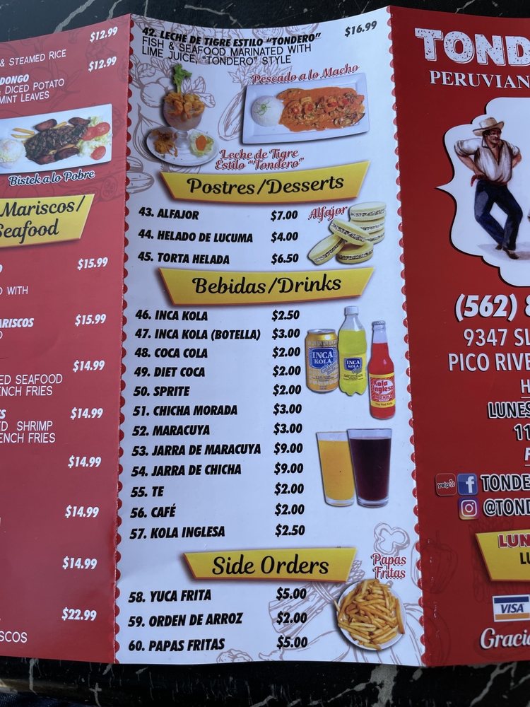 Tondero Peruvian Cuisine is a hidden gem that offers a cozy and authentic Peruvian dining experience. Located in Pico Rivera, CA, this divey yet casual spot delivers delicious Peruvian dishes with excellent service. Customers rave about the Lomo Saltado and Saltado de Pollo, praising the tender and flavorful meats. The green spaghetti (tañarin) with grilled chicken is also a favorite for its unique combination of flavors. The warm and welcoming atmosphere, accompanied by Peruvian music, creates a nostalgic feeling of being back home. Despite its small size, the restaurant provides a memorable dining experience with quick service and delicious bread. If you're a fan of Peruvian cuisine, Tondero Peruvian Cuisine is a must-visit spot for an authentic and satisfying meal.